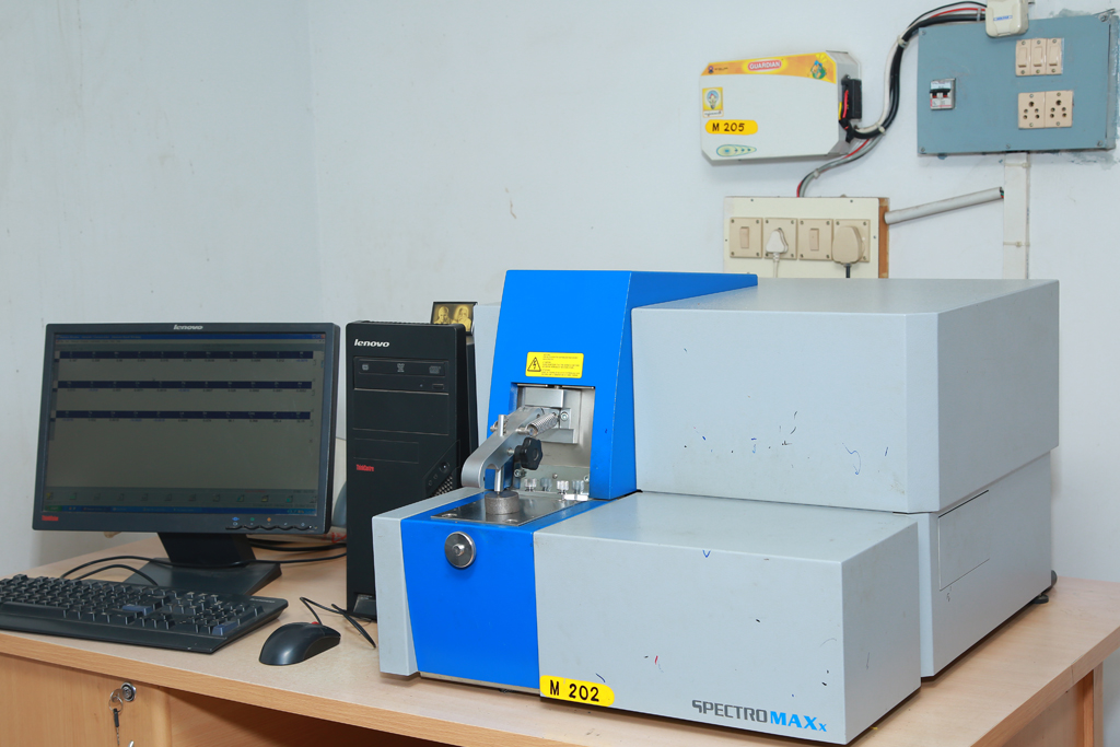 Spectrometer of Optical emission type to analyse 31 elements including Nitrogen ensures required Chemical composition before pouring.